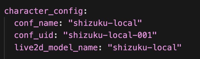 name | 模型的唯一标识符,建议使用英文 | "shizuku-local" |
